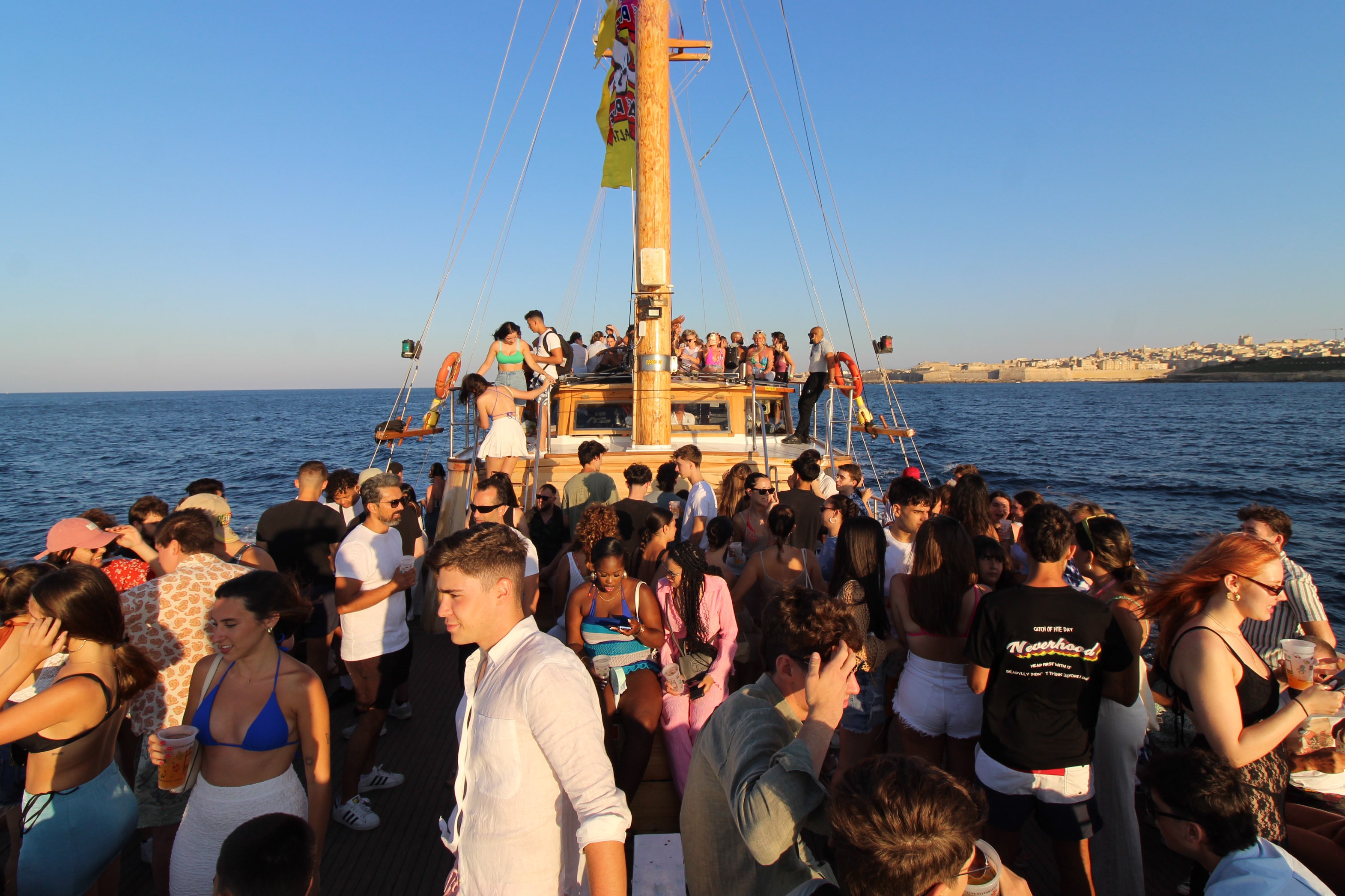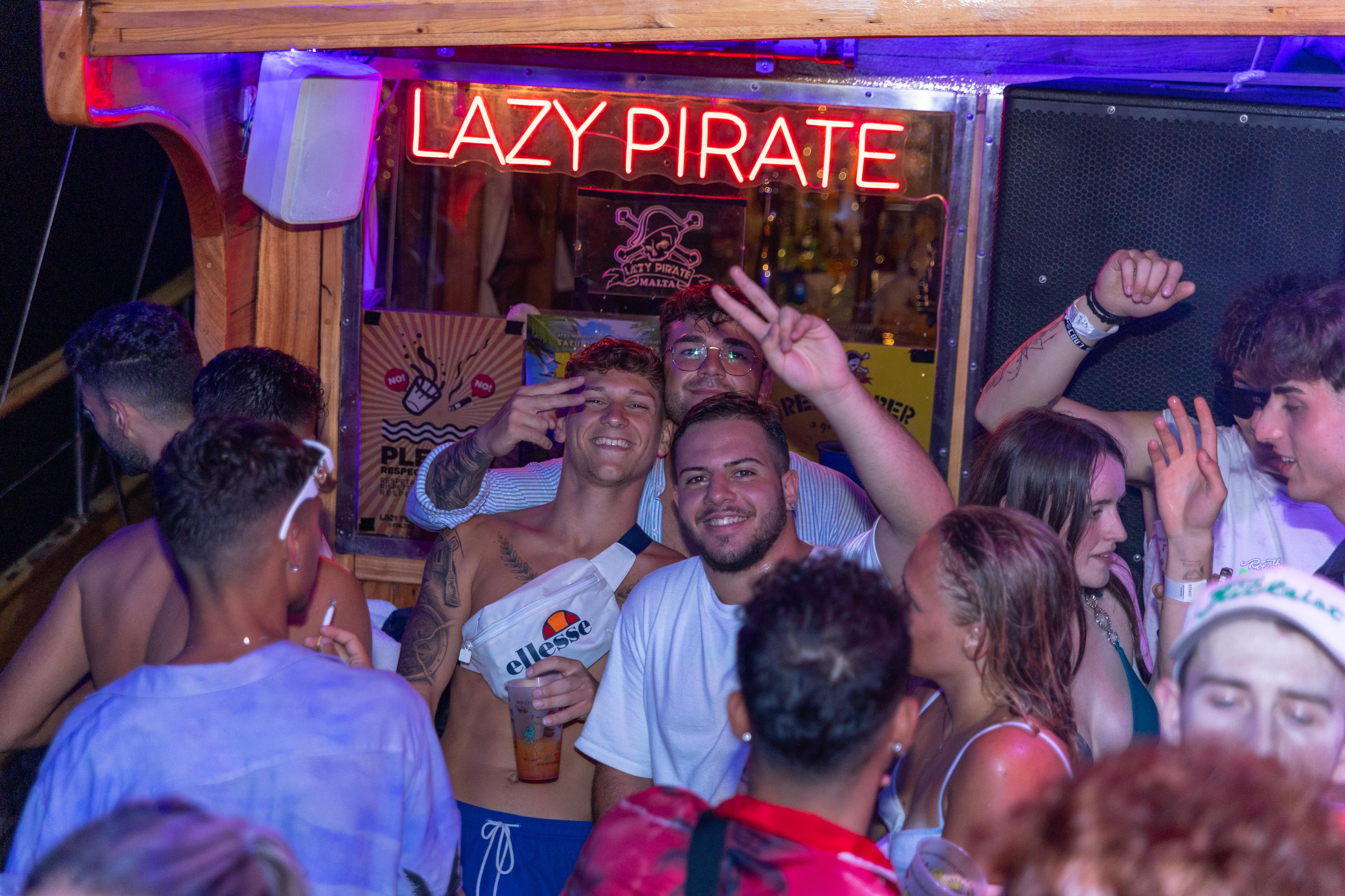 The Lazy Pirate boat party is the ultimate summer event in Malta. Gather with other party enthusiasts for an evening of endless fun. Your ticket grants you unlimited access to an open bar filled with spirits, beer, and soft drinks. Dance the night away with beats from our onboard DJ and enjoy a unique moonlight swim in the Mediterranean.